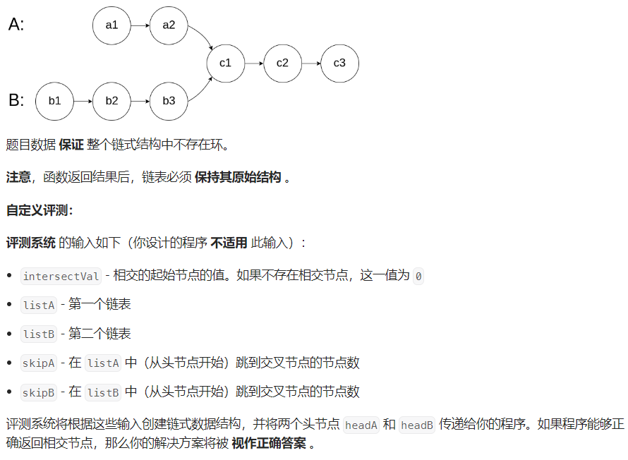 c>0(说明存在公共尾部),即表示c1这个节点是存在的,两链表同时到达c1 - 如果