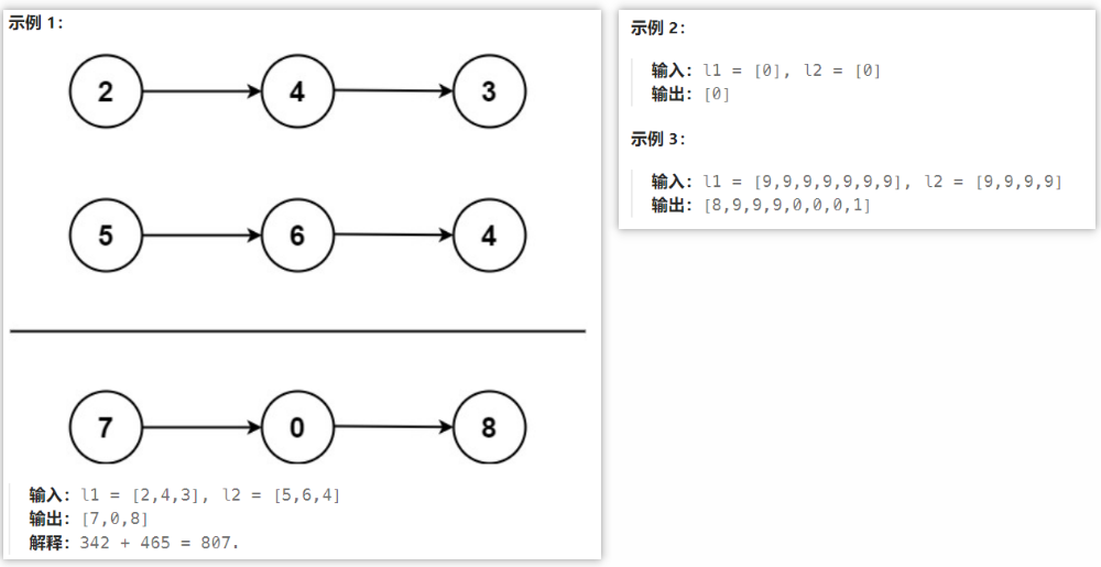 给你两个 非空 的链表,表示两个非负的整数。它们每位数字都是按照 逆序 的方式存储的,并且每个节点只能存储 一位 数字。