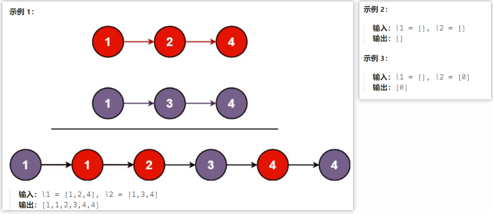 将两个升序链表合并为一个新的 升序 链表并返回。新链表是通过拼接给定的两个链表的所有节点组成的