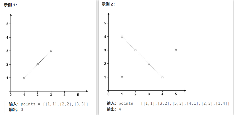给你一个数组 points ,其中 points[i] = [xi, yi] 表示 X-Y 平面上的一个点。求最多有多少个点在同一条直线上。