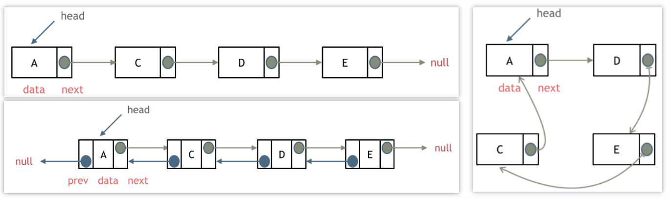 链表是一种通过指针串联在一起的线性结构,每一个节点由两部分组成,一个是数据域一个是指针域(存放指向下一个节点的指针),最后一个节点的指针域指向null(空指针的意思)
