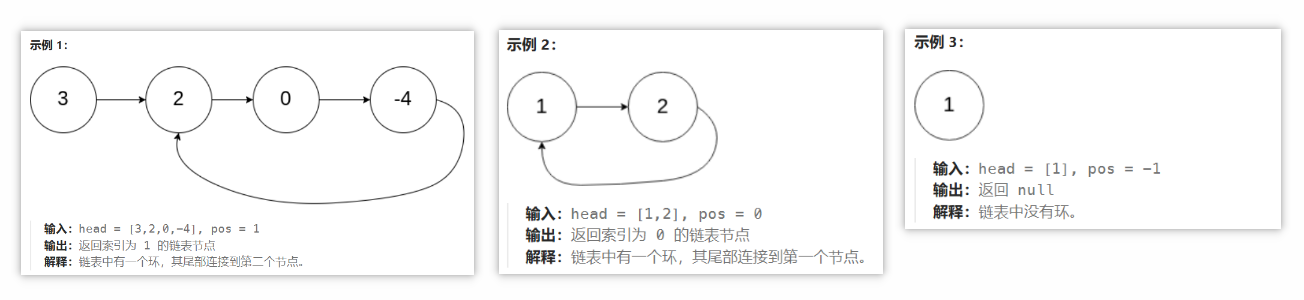 - 这两个题目的目的是:判断是否存在环、判断环的入口