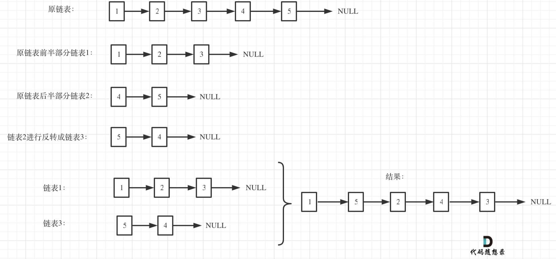 * ③ 合:将排序后的两个链表进行合并(参考【合并两个有序链表思路】)
