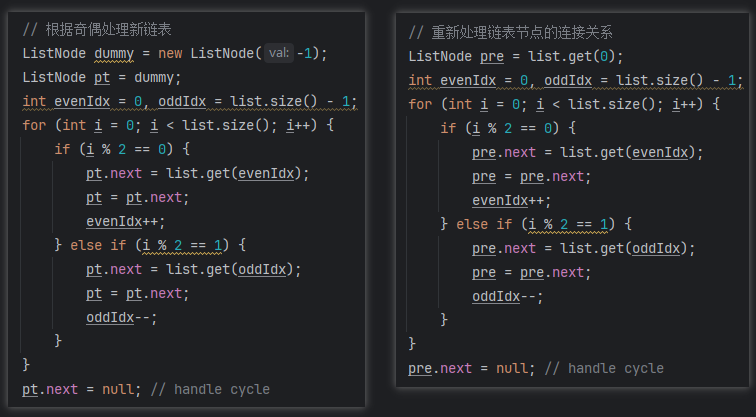 ListNode cur = dummy; // cur 初始化指向虚拟头节点