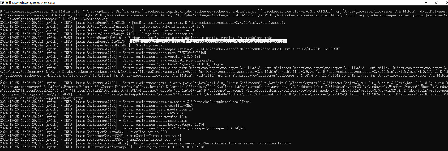 zkServer.cmd(注意windows下不是zkServer.cmd start,而是zkServer.cmd(否则启动提示报错))