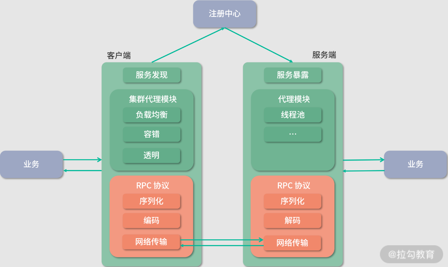 - Registry:注册中心。 负责服务地址的注册与查找,服务的 Provider 和 Consumer 只在启动时与注册中心交互。注册中心通过长连接感知 Provider 的存在,在 Provider 出现宕机的时候,注册中心会立即推送相关事件通知 Consumer。