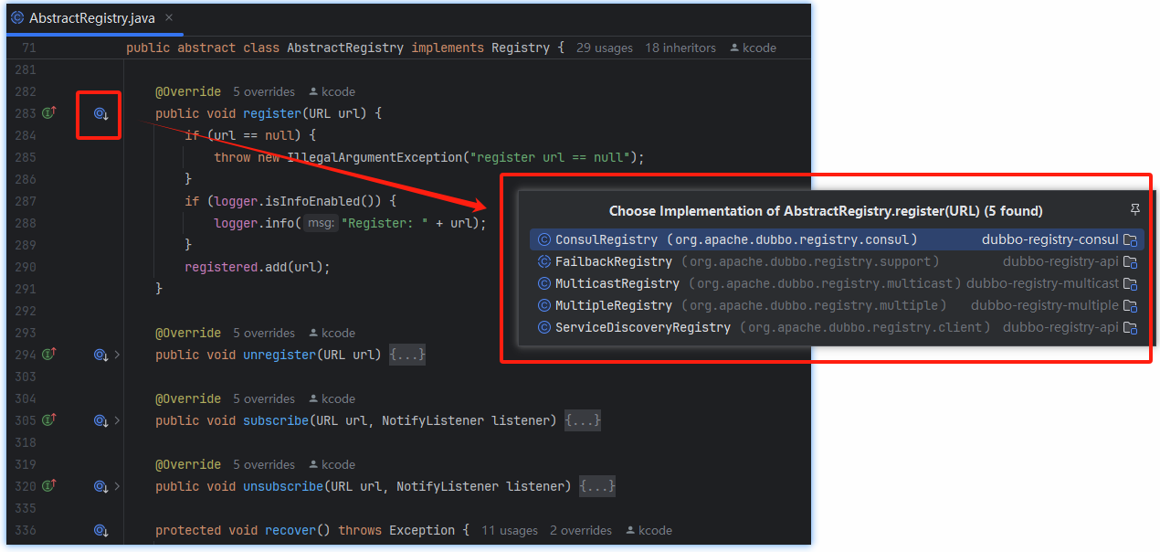 介绍完 AbstractRegistry 的核心字段之后,进一步关注 AbstractRegistry 依赖这些字段都提供了哪些公共能力: