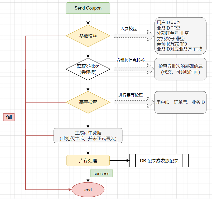 - 从基础的发券、验券功能切入,构建了一个基础的优惠券系统架构,从服务设计、存储选型、业务流程等方面分析了优惠券系统的一些设计核心和要点